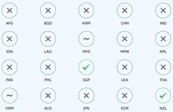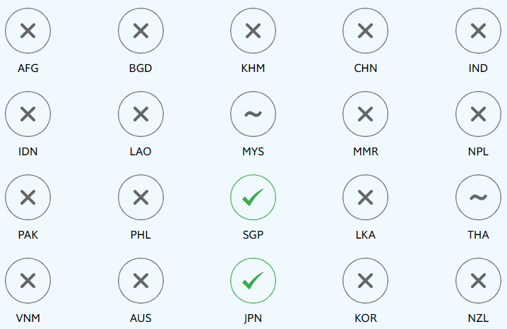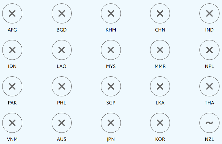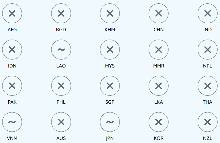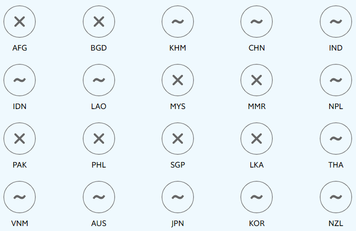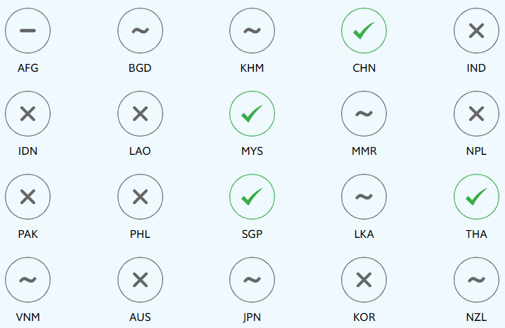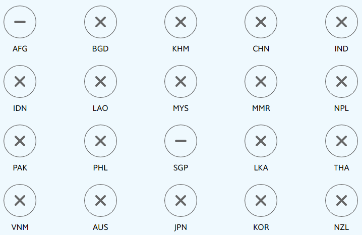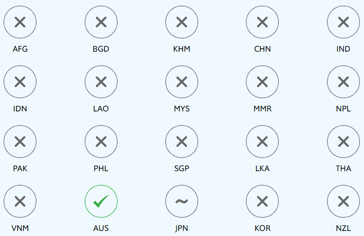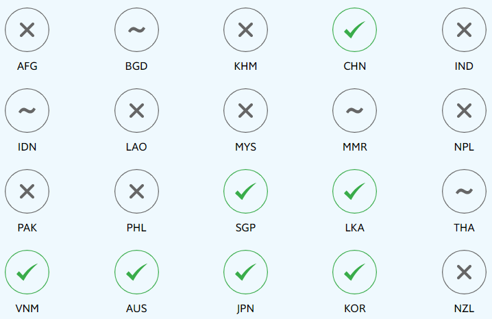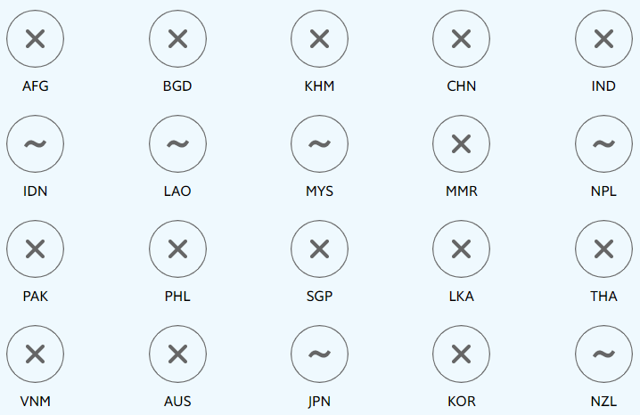 Footnote 1: The chart shows all countries with available data and a population of at least five million in the Asia-Pacific region, with the exception of North Korea (PRK) and Papua New Guinea (PNG). These include: Afghanistan (AFG), Australia (AUS), Bangladesh (BGD), Cambodia (KHM), China (CHN), India (IND), Indonesia (IDN), Japan (JPN), Korea (KOR), Laos (LAO), Malaysia (MYS), Myanmar (MMR), Nepal (NPL), New Zealand (NZL), Pakistan (PAK), the Philippines (PHL), Singapore (SGP), Sri Lanka (LKA), Thailand (THA) and Vietnam (VNM).
